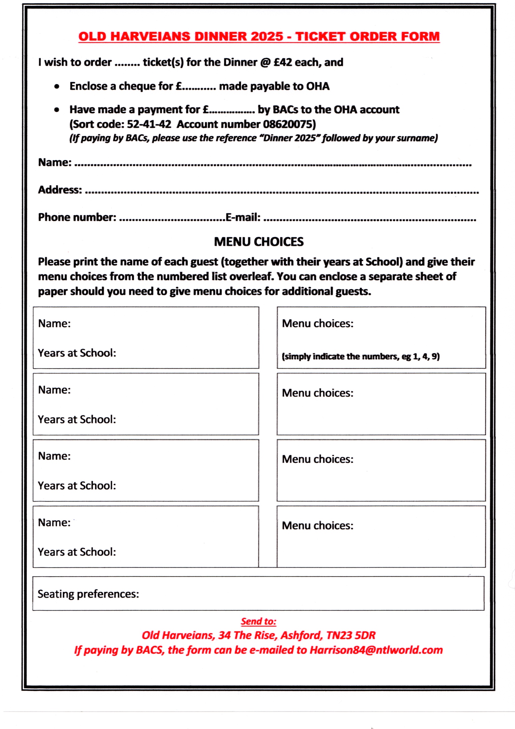 The OHA has a unique and close relationship with the School. The Harvey does not have a Parent Teachers Association and the OHA provides the important fund-raising that is usually done by a PTA. In recent years these funds have provided a new mini-bus, re-stocked the Library and sent all Year 9 pupils to Ypres war graves each year during the WW1 commemorations. This is why your membership and subscription is so important. The Association produces a regular Newsletter and has an active social calendar. The first Saturday in December always sees the OHA Annual Reunion Dinner at the School, which invariably attracts a large gathering and is a focus for the year-group reunions. We hold occasional luncheons with distinguished speakers, a Concert each March as well as running trips to places of interest.